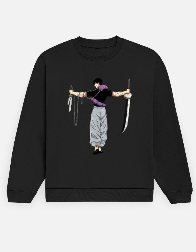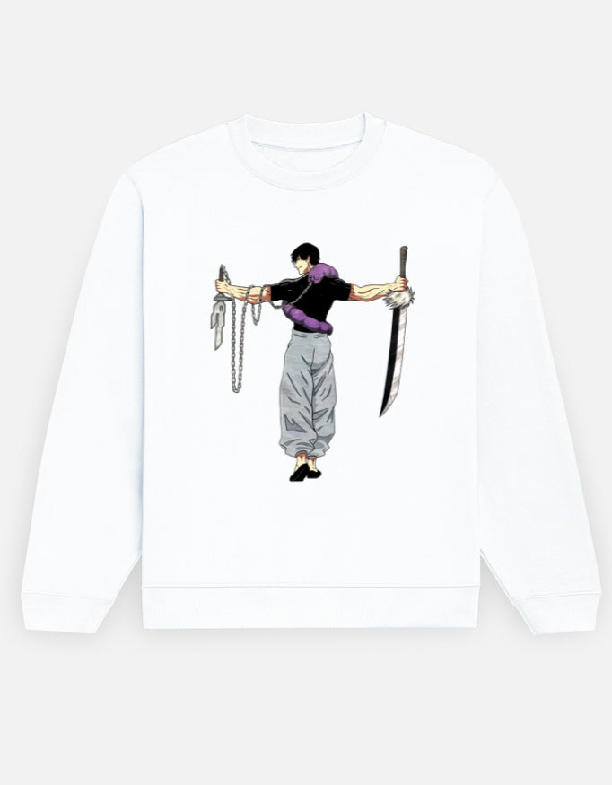 Anime Warrior with Sword & Chains Graphic Sweatshirt | Japanese Manga Style Pullover by Tin Brother