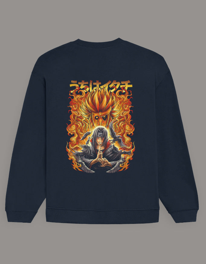 Itachi Uchiha Fire Aura Oversized Sweatshirt | Luxury Collection Anime Streetwear by Tin Brother