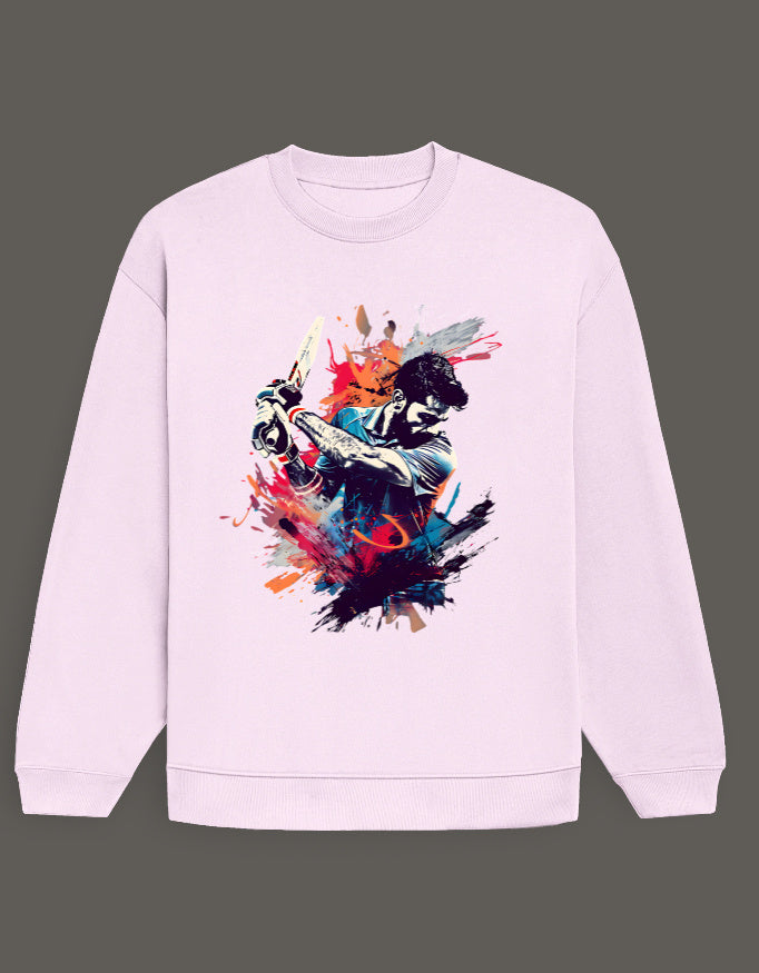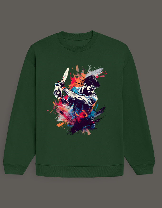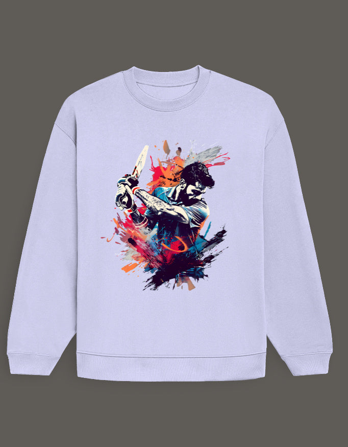 Tin Brother Luxury Collection – The King Kohli Dynamic Batting Art Sweatshirt | Abstract Splash Grunge Design Unisex Premium Pullover