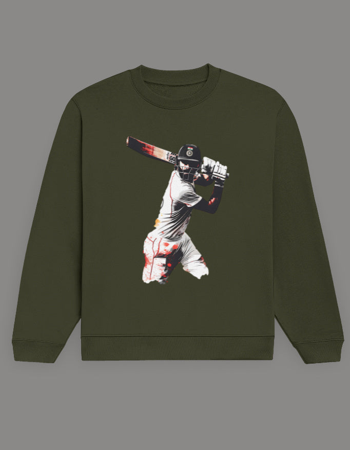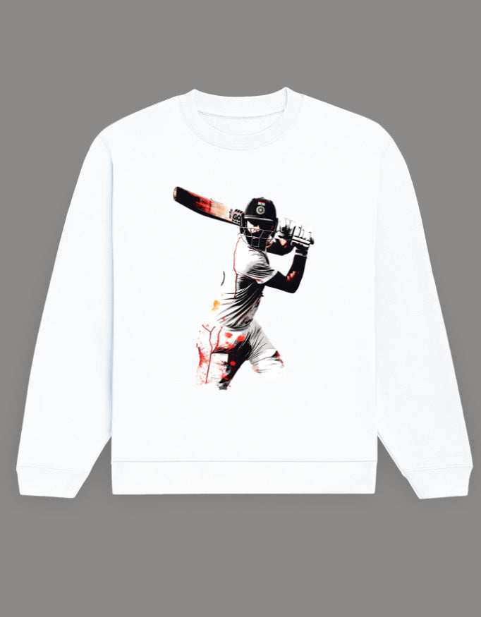 ๐ โPlay bold. Rule the crease.โ ๐ Celebrate your cricket passion with the Cricket King Classic Shot Sweatshirt by Tin Brother โ inspired by the elegance and power of a world-class batsmanโs timeless cover drive.