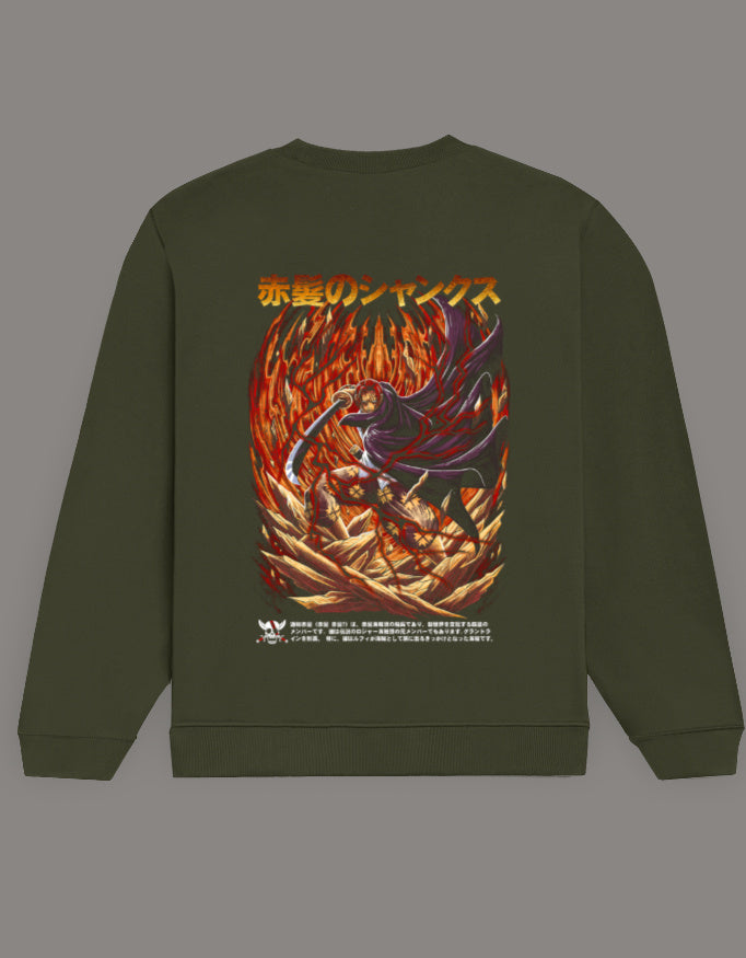 Red Emperor Fire Aura Japanese Art Premium Sweatshirt | Pirate King Inspired Streetwear by Tin Brother